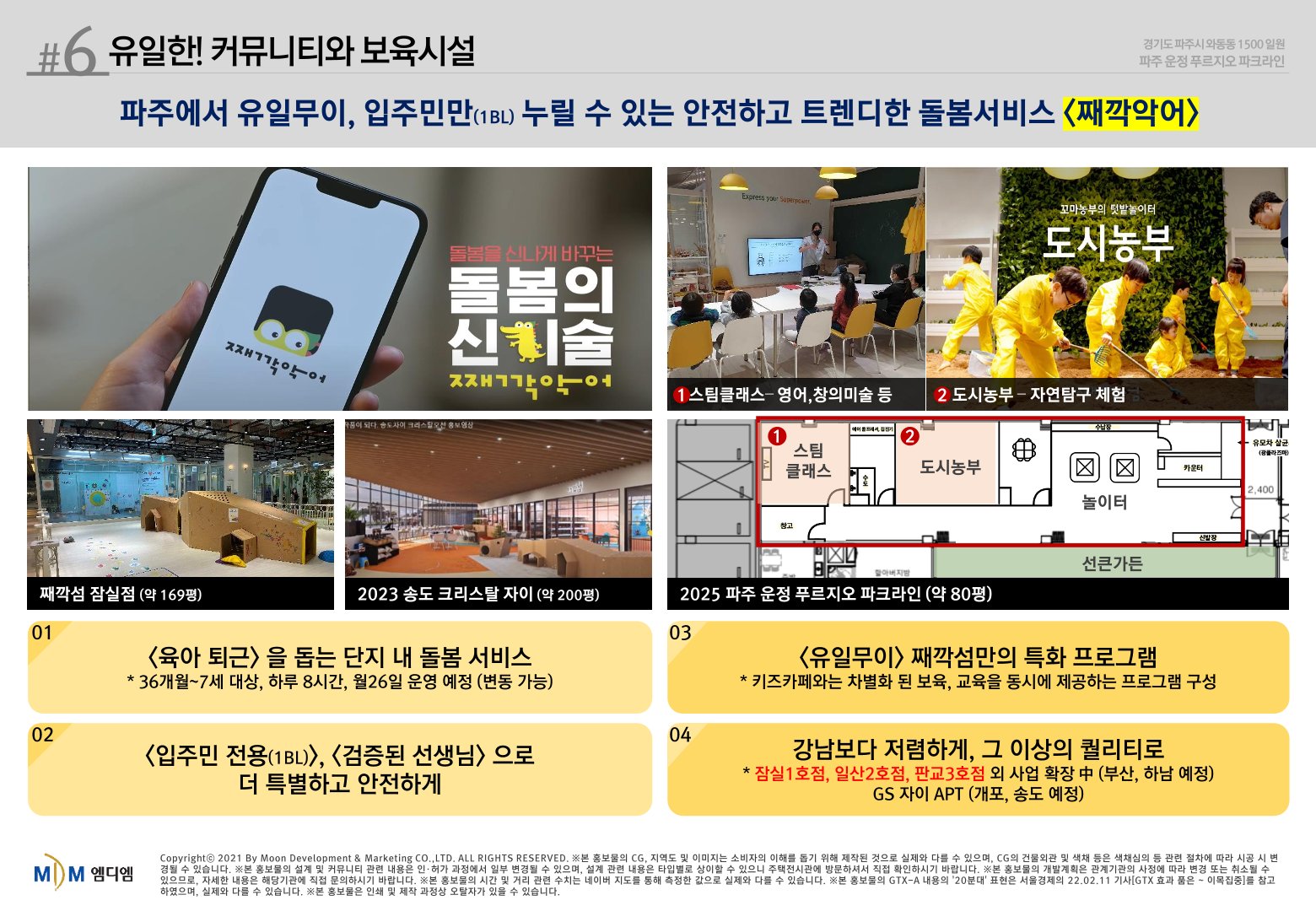 운정 푸르지오 파크라인 커뮤니티 와 보육시설