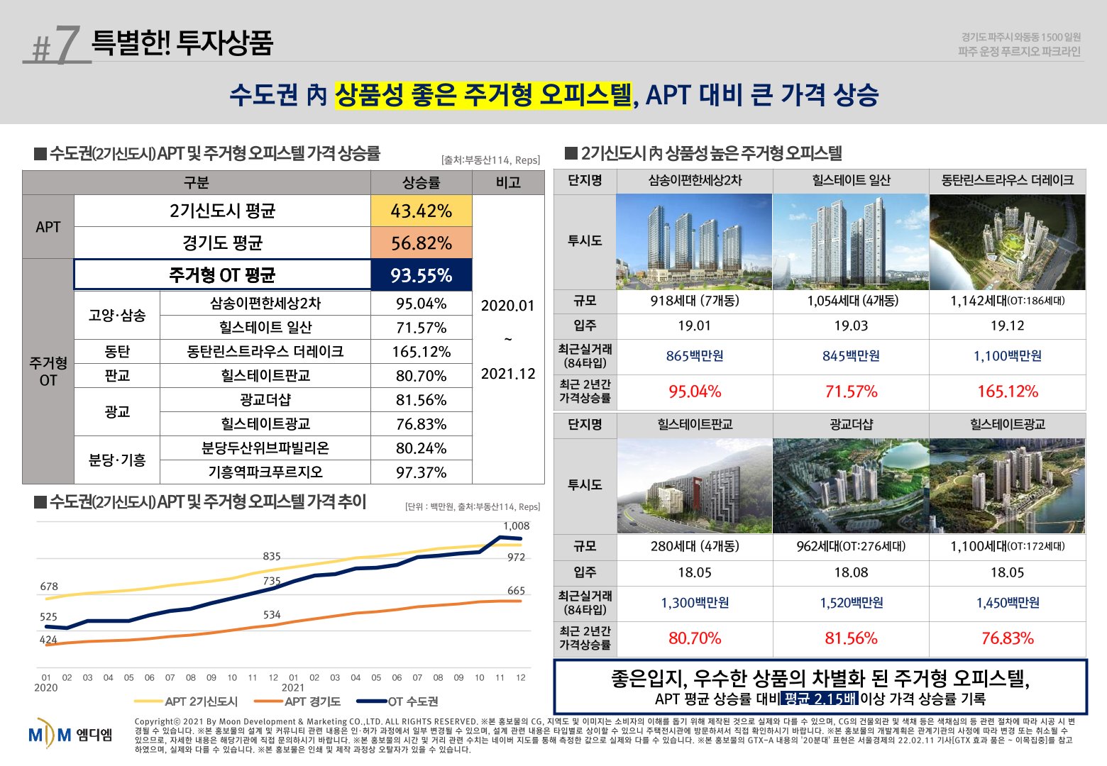 수도권 내에 상품성 좋은 주거형 오피스텔로 아파트 대비 큰 가격 상승을 기록하고 있습니다.