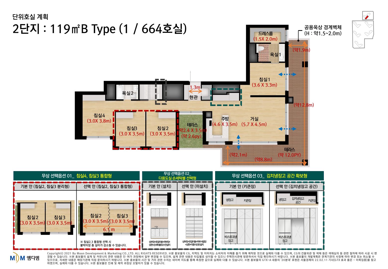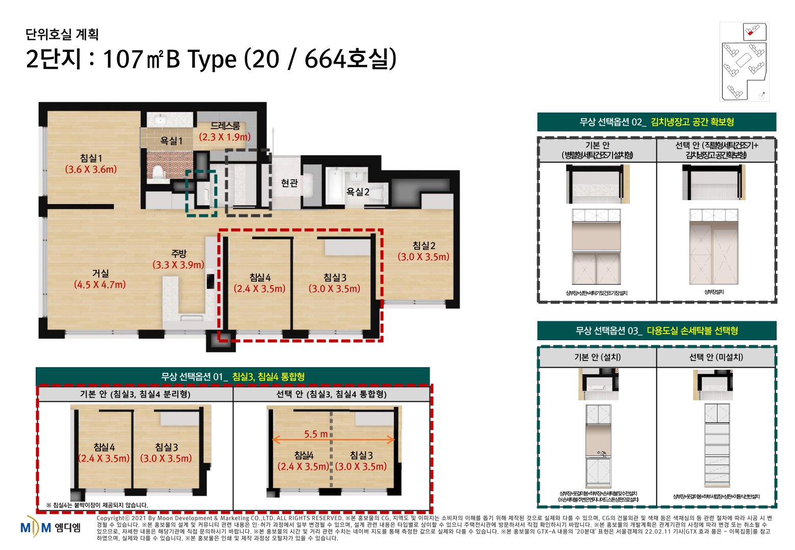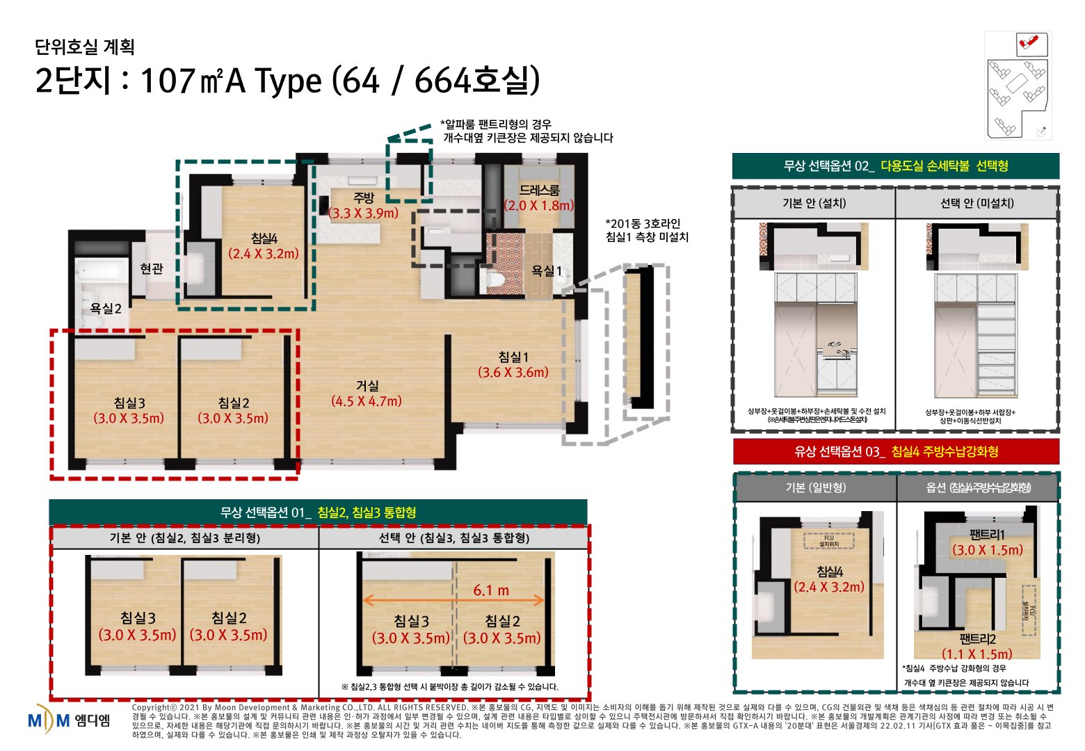 2단지는 지하 3층 ~ 지상 24층, 1개동 86실 전용면적 107.119m2 로 구성됩니다.