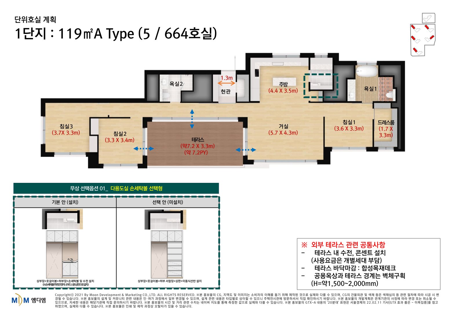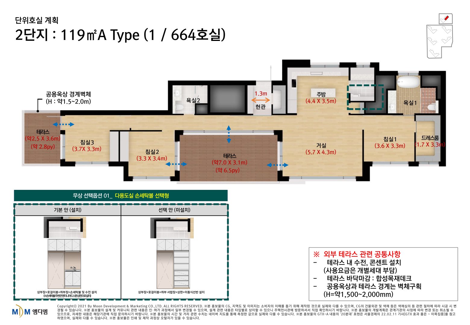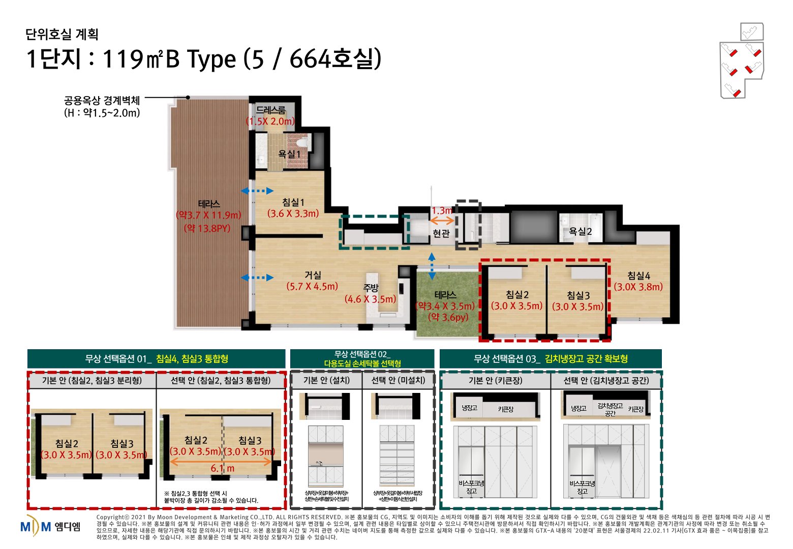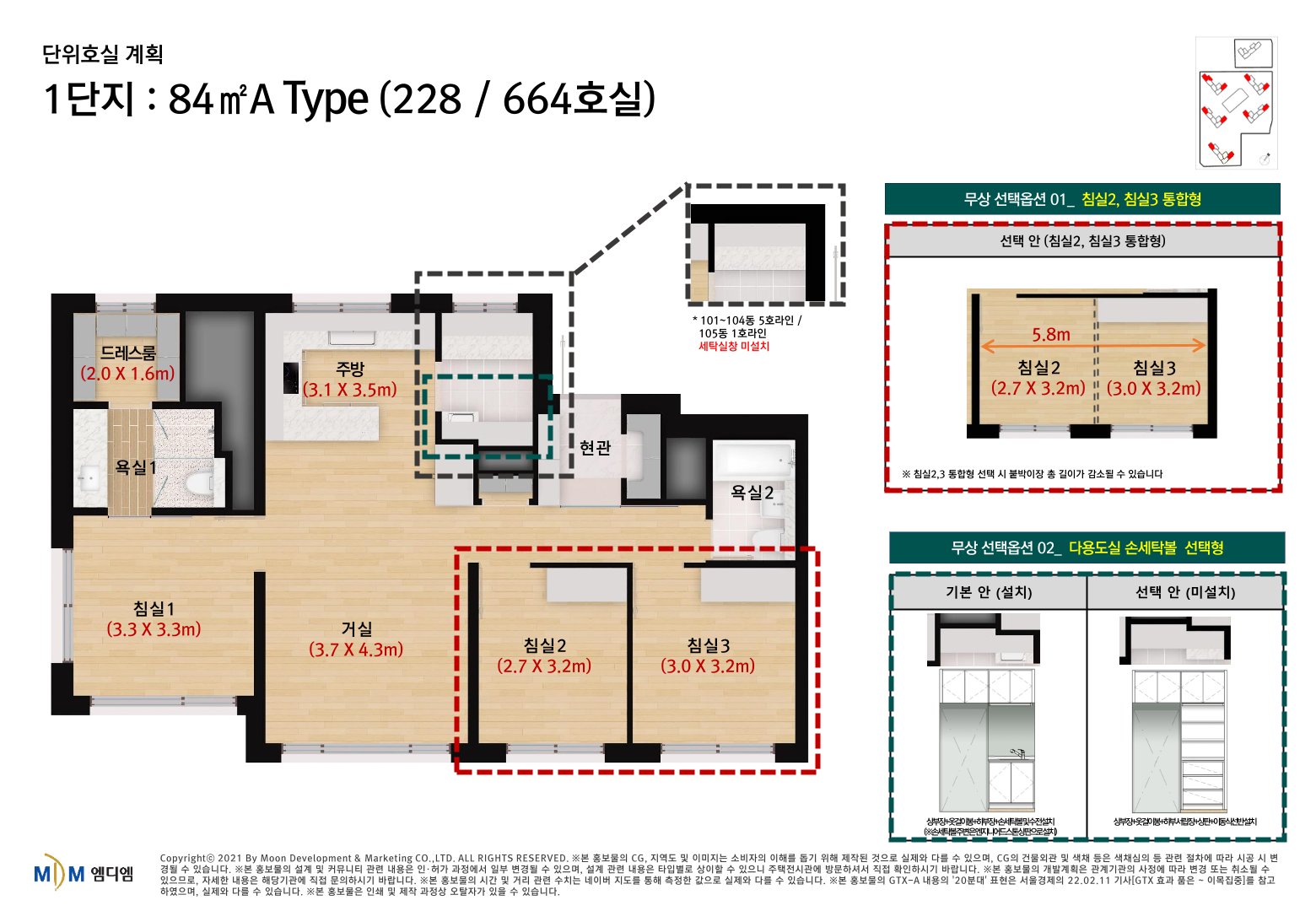 2단지는 지하 3층 ~ 지상 24층, 1개동 86실 전용면적 107.119m2 로 구성됩니다.