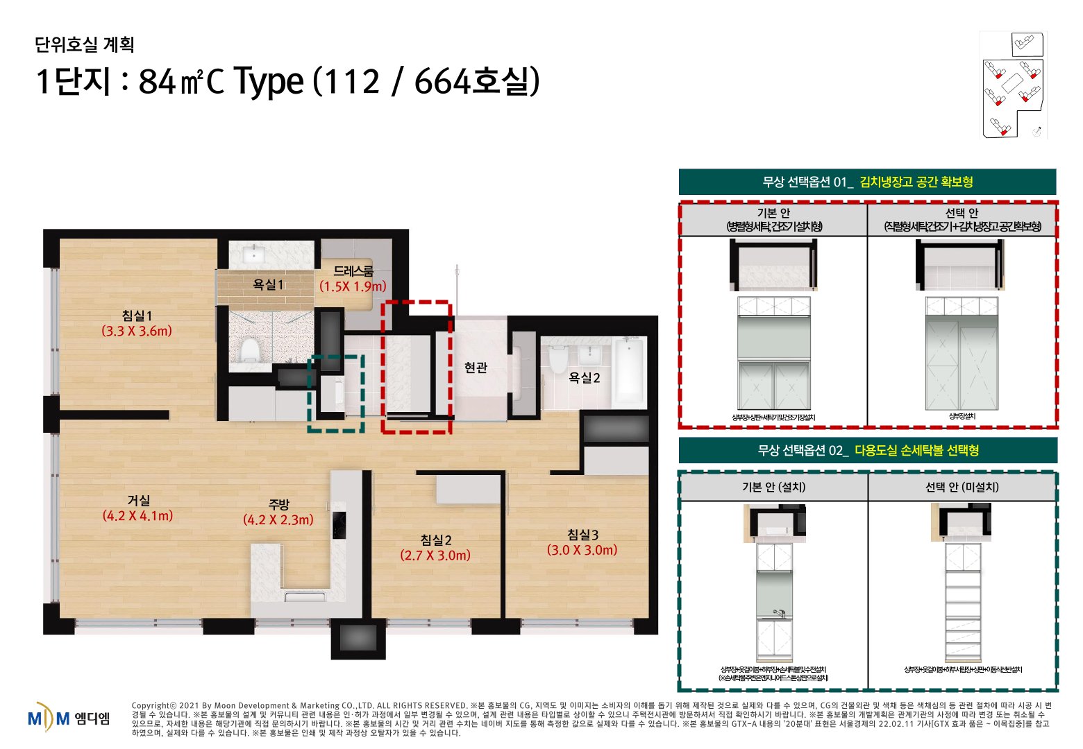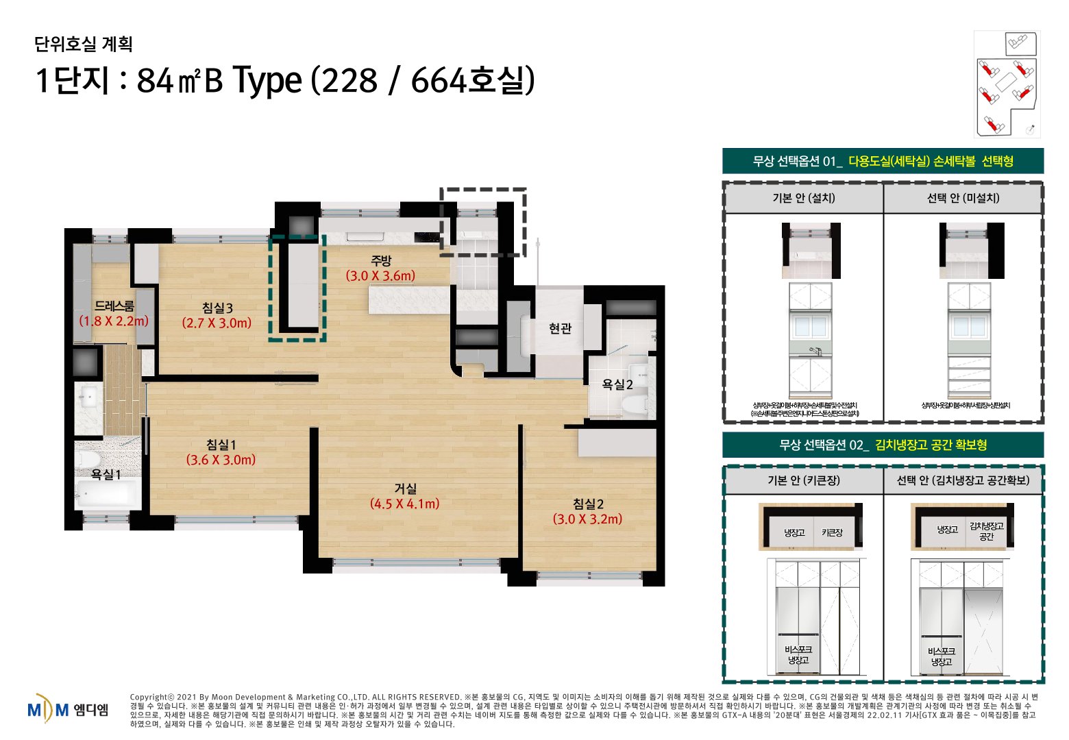 월패드와 빌트인 전기오븐 및 식기세척기 그리고 인덕션 3구와 4도어 냉장고를 무상으로 제공하고 있습니다.