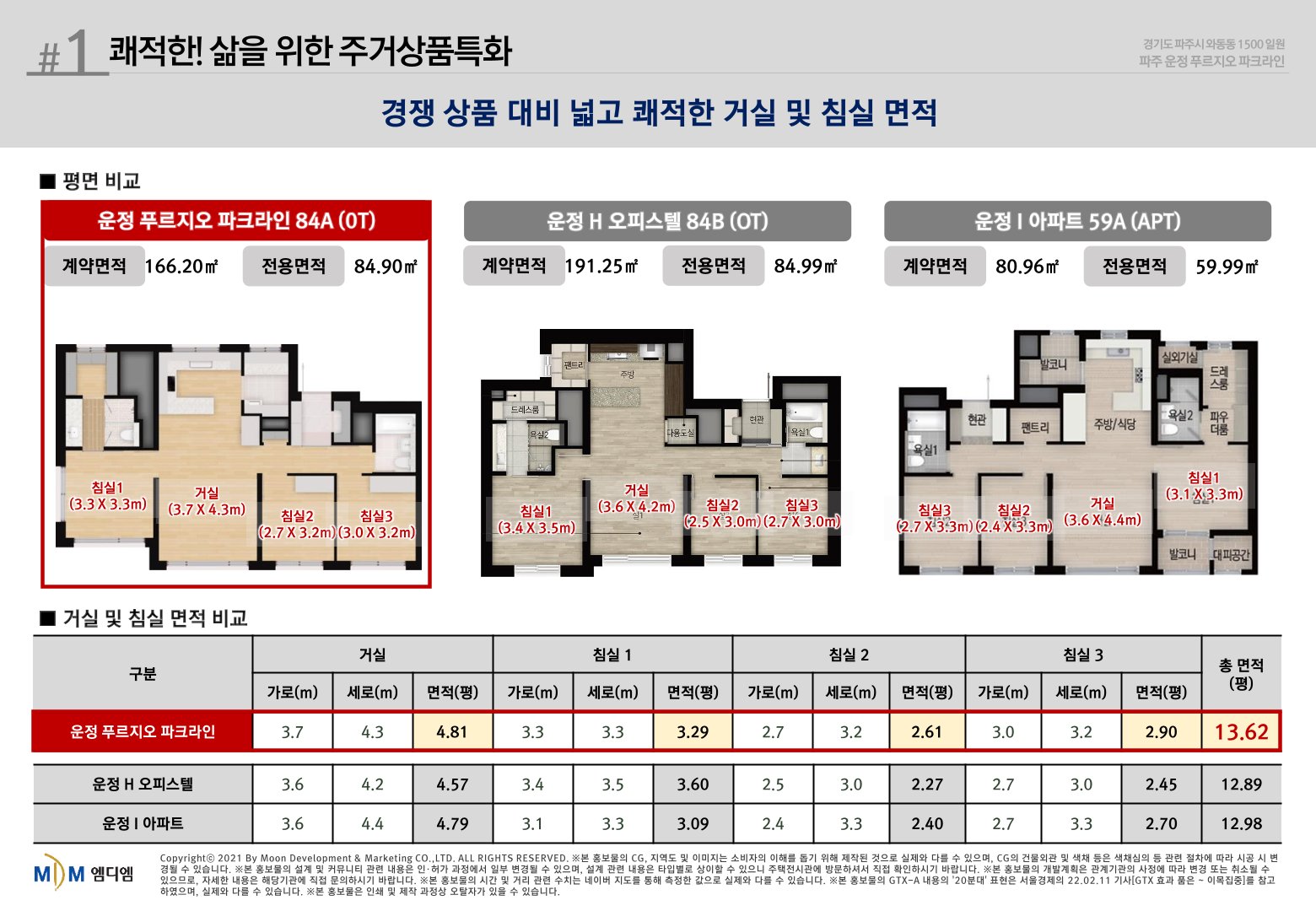 주변 경쟁 상품 대비 넓고 쾌적한 거실 및 침실 면적